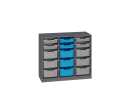 - Posiada 9 pojemników średnich (WxSxG) 150x312x427 mm oraz 6 małych (WxSxG) 75x312x427 mm, prowadnice plastikowe