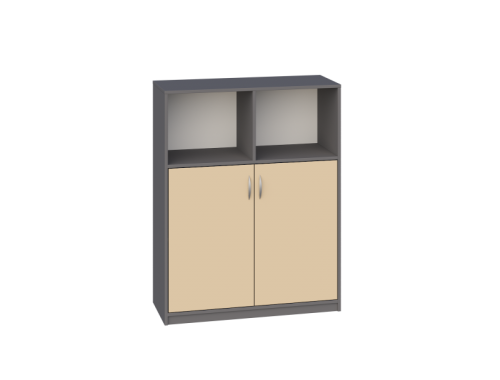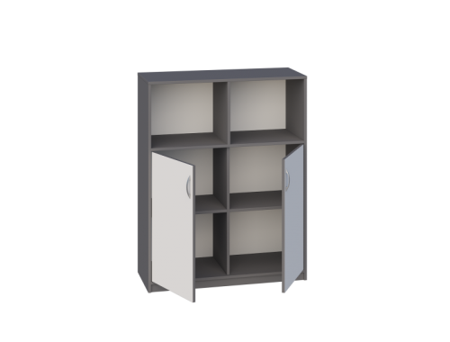 - Posiada 1 przegrodę i 4 półki, które tworzą 6 dużych przestrzeni do przechowywania. Dwie z nich są otwarte, cztery zamykane parą drzwi bez zamka.