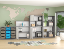 W zestawie znajduje się 6 małych (4 szt. srebrny+2 szt. niebieski) i 9 średnich pojemników (6 szt. srebrny+3 szt. niebieski) z prowadnicami z zabezpieczeniem przed wypadaniem. - ULTRA 309 - o wymiarze (WxSxG) 1334x1045x450 mm.